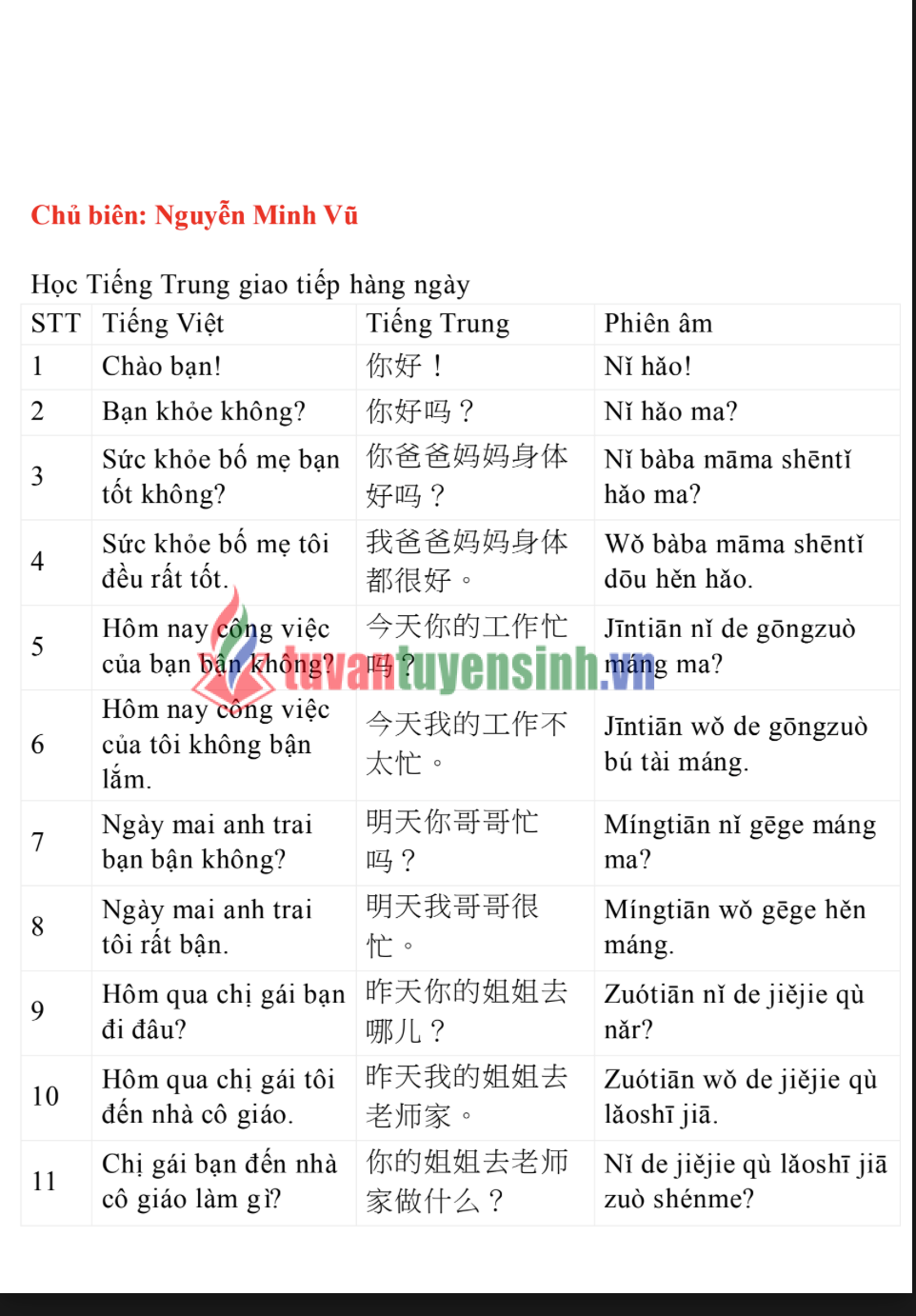 3000 Câu Tiếng Trung Giao Tiếp Hằng Ngày Học Tiếng Trung Giao Tiếp Hằng Ngày