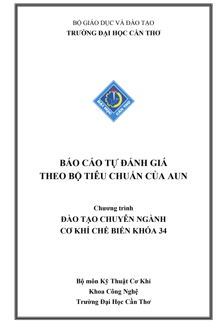 👉 Tải ngay Báo cáo AUN Cơ khí Chế biến Khóa 34 – ĐH Cần Thơ để tham khảo chi tiết hệ thống bảo đảm chất lượng đào tạo và chuẩn đầu ra theo chuẩn AUN.