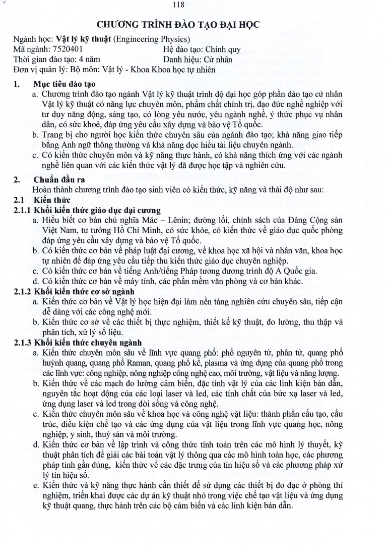 Tài liệu “Chương trình đào tạo ngành Vật lý Kỹ thuật – Đại học Cần Thơ” cung cấp khung đào tạo chính quy 4 năm với hệ thống kiến thức cơ bản, chuyên sâu và kỹ năng thực hành hiện đại. Đây là chương trình được thiết kế để đào tạo cử nhân có năng lực chuyên môn cao, phẩm chất chính trị – đạo đức nghề nghiệp vững vàng, cùng khả năng sáng tạo và thích ứng với các ngành nghề liên quan đến vật lý ứng dụng.