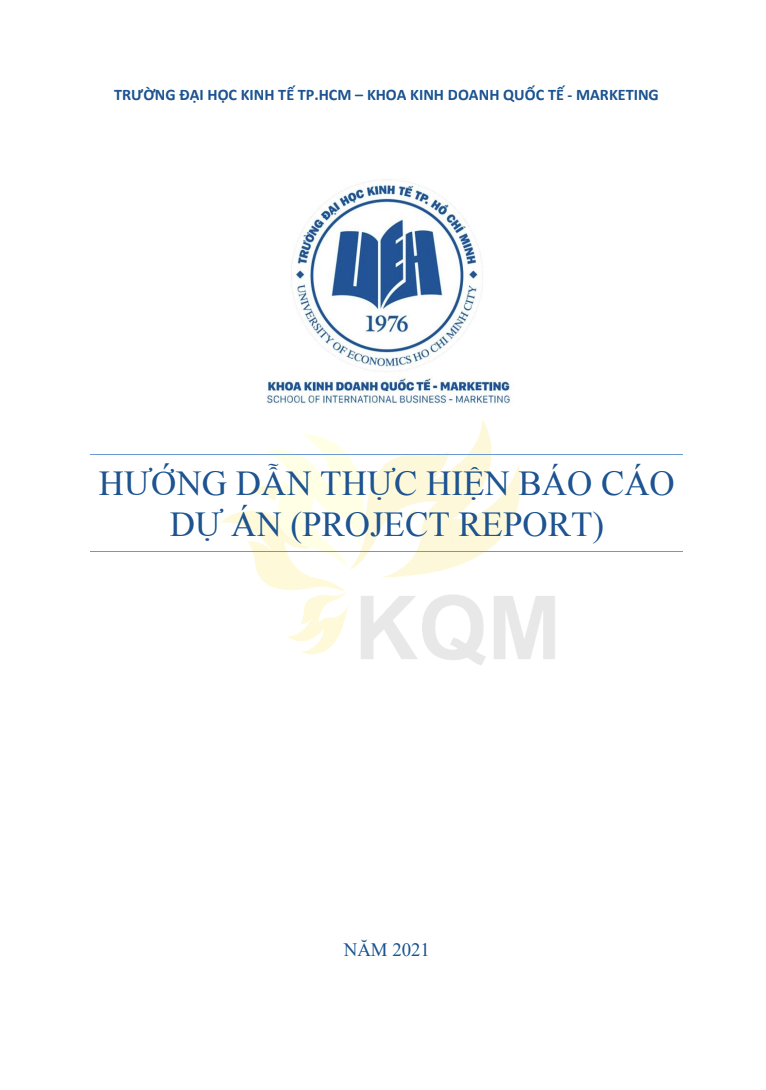 Đây là tài liệu hướng dẫn thực hiện báo cáo dự án (Project Report) do Khoa Kinh doanh Quốc tế – Marketing, Trường Đại học Kinh tế TP.HCM (UEH) ban hành năm 2021. Mục tiêu của tài liệu là giúp sinh viên nắm rõ quy trình, cấu trúc và cách trình bày một báo cáo dự án theo chuẩn học thuật và thực tiễn.
